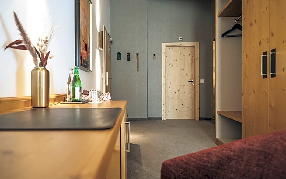 The spacious junior suites are all furnished with 2 joined single beds and a loft bed for children up to 14 years old. The rooms are 125 ft² in size and come with a balcony or a terrace, a separate living and bedroom. The rooms are equipped with a shower and a bathtub or a shower tub. All rooms feature a Nespresso coffee machine also providing hot water, free WiFi and a mini bar.